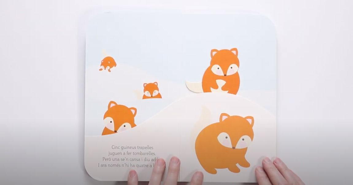 Cinc guineus a la neu. Llibre infantil amb elements mòbils