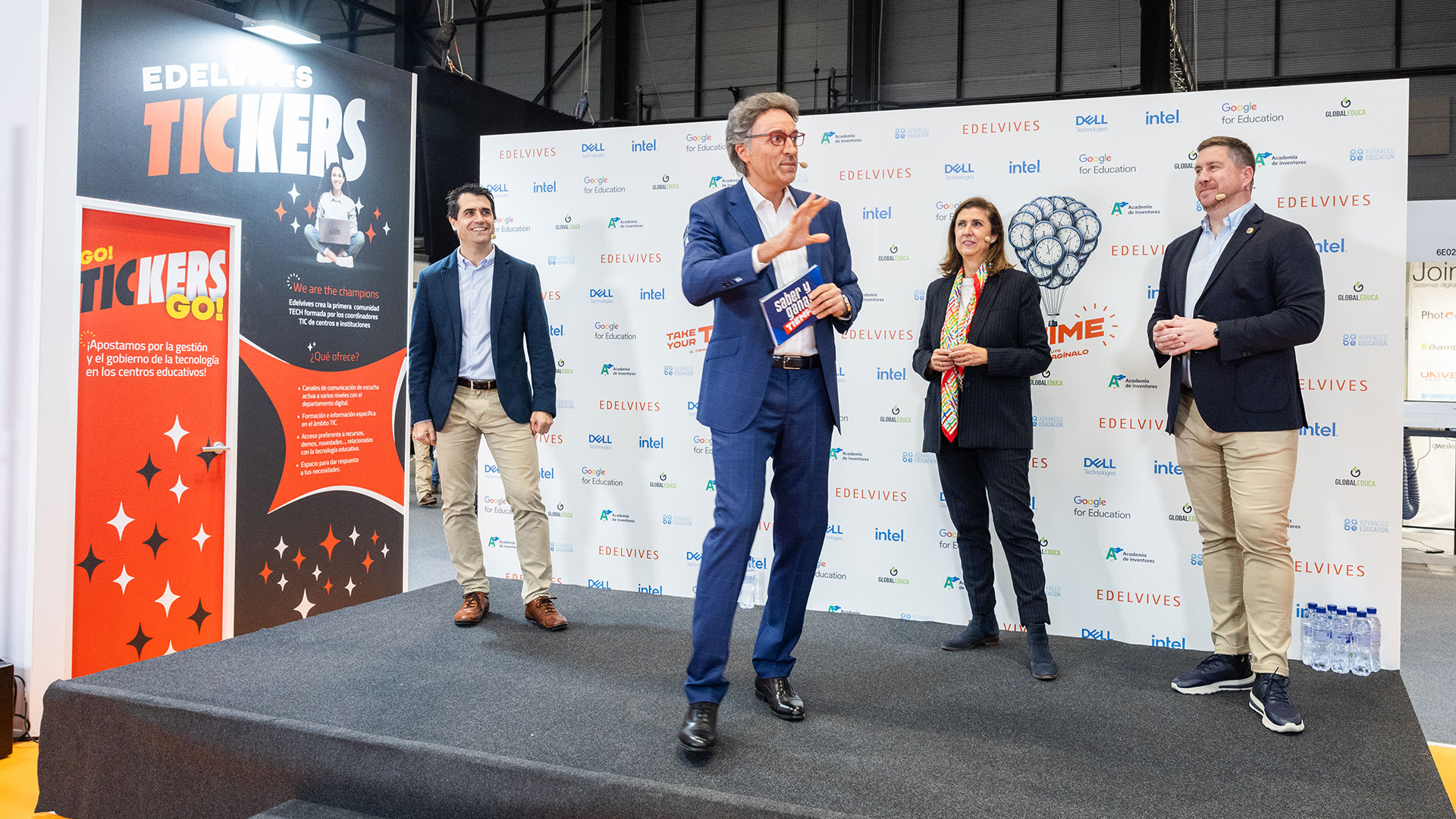 La editorial inauguró su stand en el Salón internacional de tecnología e innovación educativa (SIMO) presentando el concurso «Saber y ganar “tiempo”» conducido por el imitador Raúl Pérez dando vida a Jordi Hurtado. Actuaron como concursantes María Antonia Rodríguez, directora general de Dell Technologies; Gonzalo Romero, Head of Education Google Spain, y Alejandro Cebrían, director general Edelvives España. Con este llamativo formato ofrecieron su propuesta para que los docentes puedan «ganar tiempo».