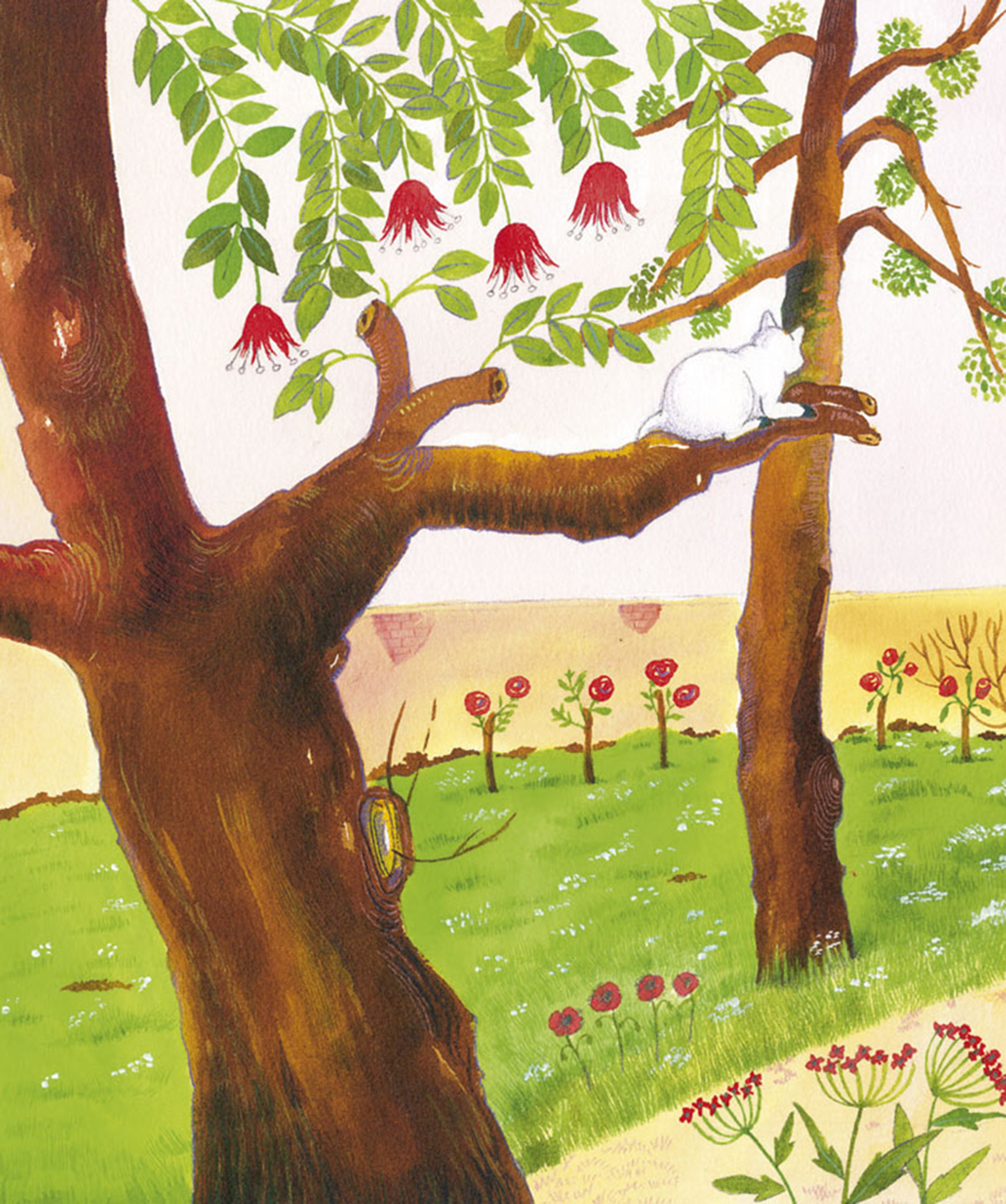 G. I.: Prácticamente ilustro todos mis libros con acuarelas y toques de lápiz de color. Nunca utilizo el ordenador y no corrijo con ningún sistema tecnológico. Lo que se ve es lo que he pintado. En cuanto al color, he buscado unas entonaciones alegres y vivas, pero he intentado no lanzarme a colores demasiado intensos porque también en eso pretendía mantener un cierto tono «poético».
