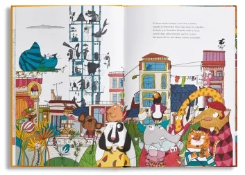 El libro está editado en cartoné y es obra de la autora e ilustradora Esther Burgueño. Sus páginas están repletas de juegos visuales para que los pequeños lectores detecten guiños a otros cuentos infantiles. Está el cocodrilo de Peter Pan, Pinocho o los Siete Cabritillos. ¡A ver cuántos encuentran!