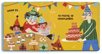 Está diseñado en cartón, con solapas y esquinas redondeadas, muy adecuado para niños pequeños. Está escrito con letra mayúscula para facilitar la lectura.