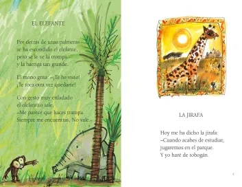 Los animales grandes, como la jirafa y el elefante, o pequeños, como la hormiga o la mariquita, son un gran centro de atención para la poesía infantil.
