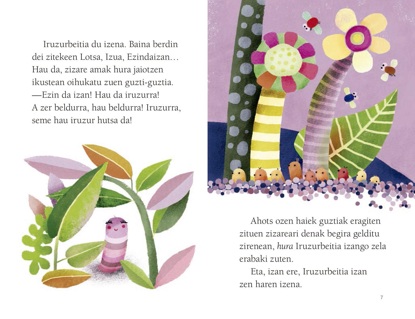 Iruzurbeitia ez da, ez, besteak bezalako zizarea: arrosa kolorekoa da eta eguzkia hartzea asko gustatzen zaio. Hori guztiori oso arraroa da, bere familiakoentzat, batez ere. Alabaina, Jango ezagutuko du basoan, armiarma barazkijalea, eta berarekin ikasiko du ezberdina izateaz gozatzen.