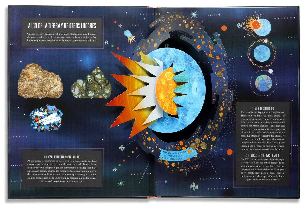 Disfruta de los sorprendentes pop-ups del interior, alucina con los misterios que la rodean y déjate seducir por la magia de este bello satélite. Descubre cómo se ha formado, qué esconde su cara oculta, a cuántos kilómetros está de la Tierra...