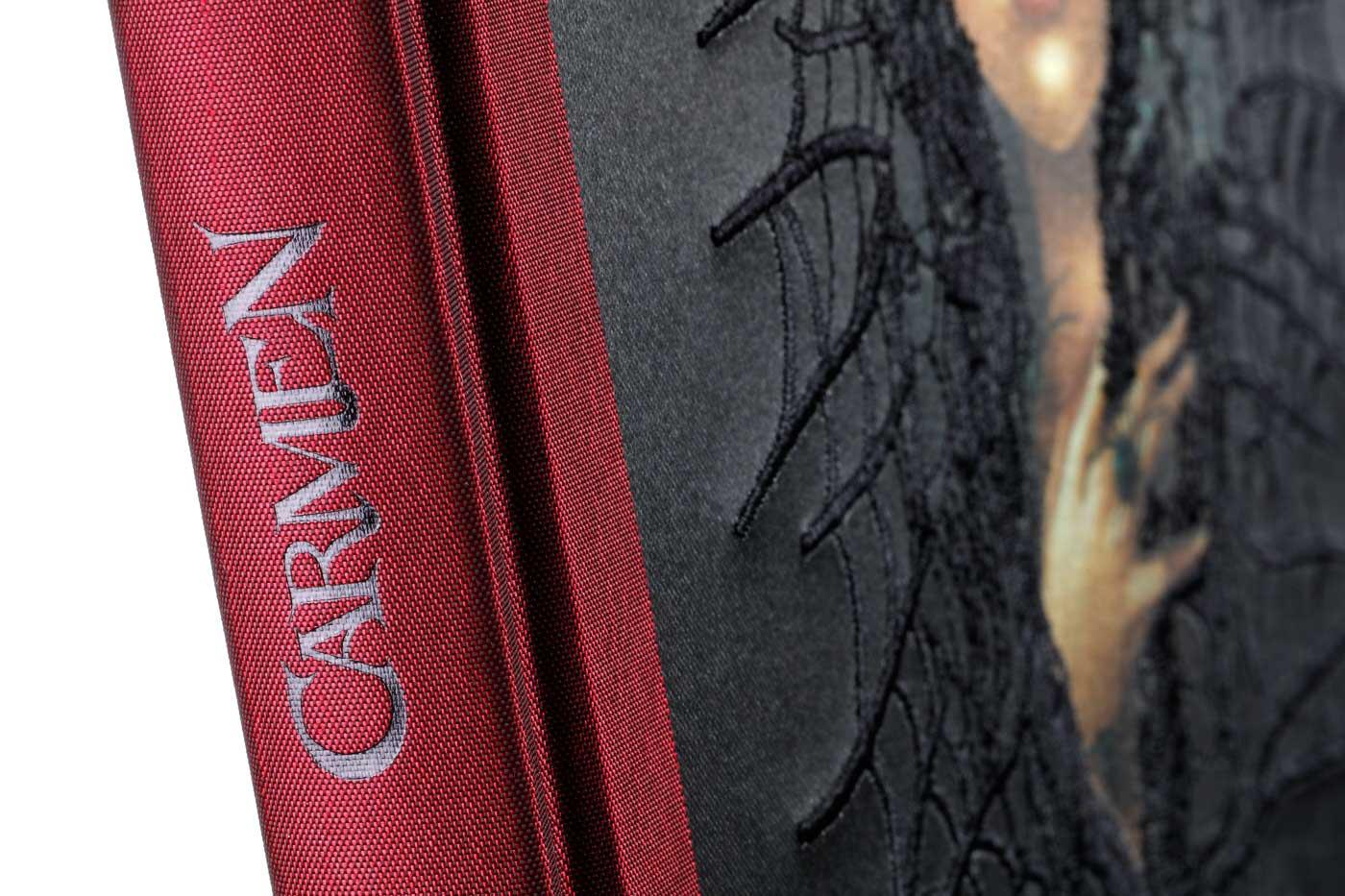 Las magníficas ilustraciones del internacionalmente reconocido Benjamin Lacombe dotan de vida a una poderosa Carmen, fascinante y peligrosa, que teje las redes de su aciago destino.