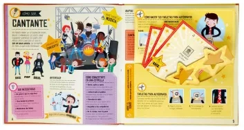 En este libro se ofrece información sobre las siguientes profesiones: músico, actor, pintor. Se plantean actividades como: montar un concierto, una obra de teatro o una exposición.